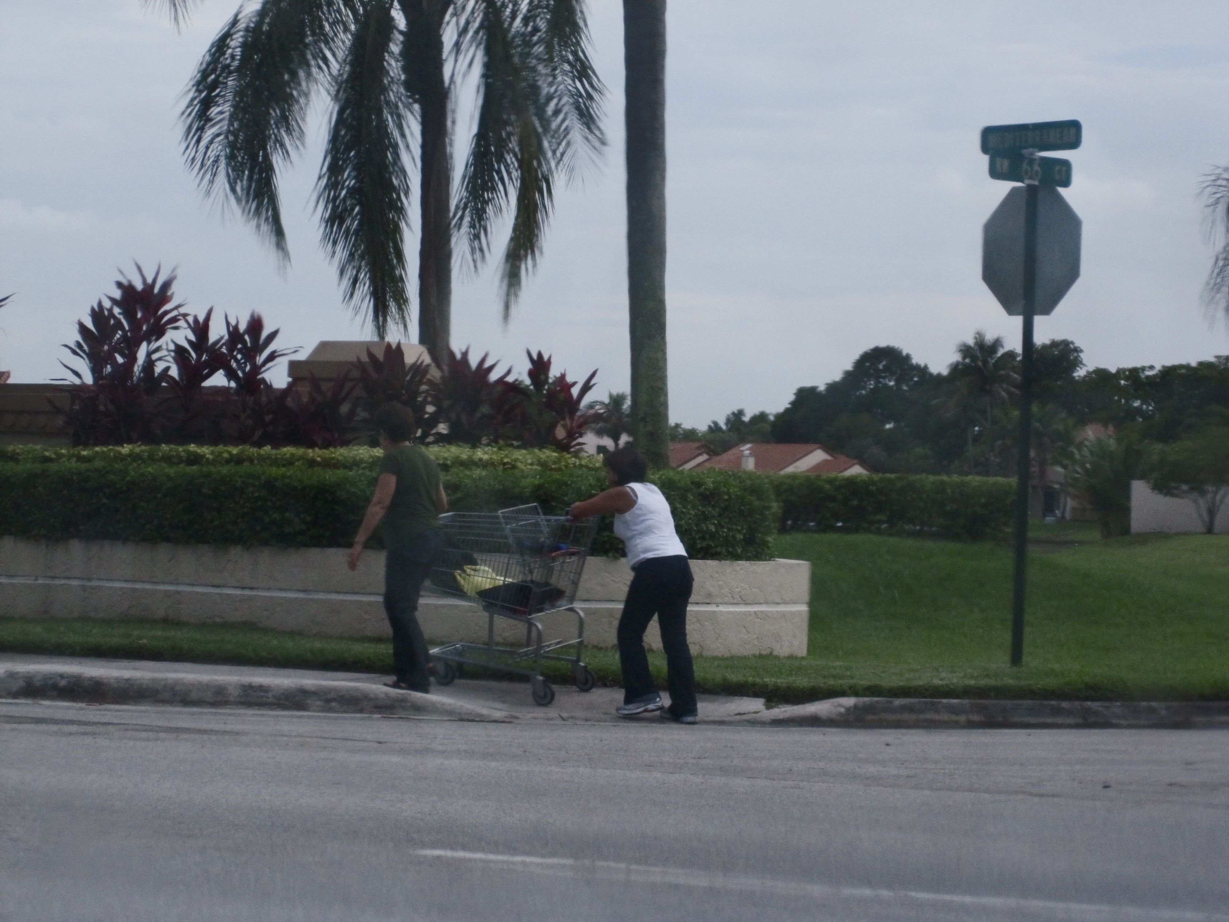 Isn’t that a shopping cart or a new fashion accessory, and someone forgot to tell me all about it? It is a shopping cart; so, why are they wheeling it up in the neighborhood and where are they taking it to? I mean, I know where it is going but isn’t that considered robbery?
