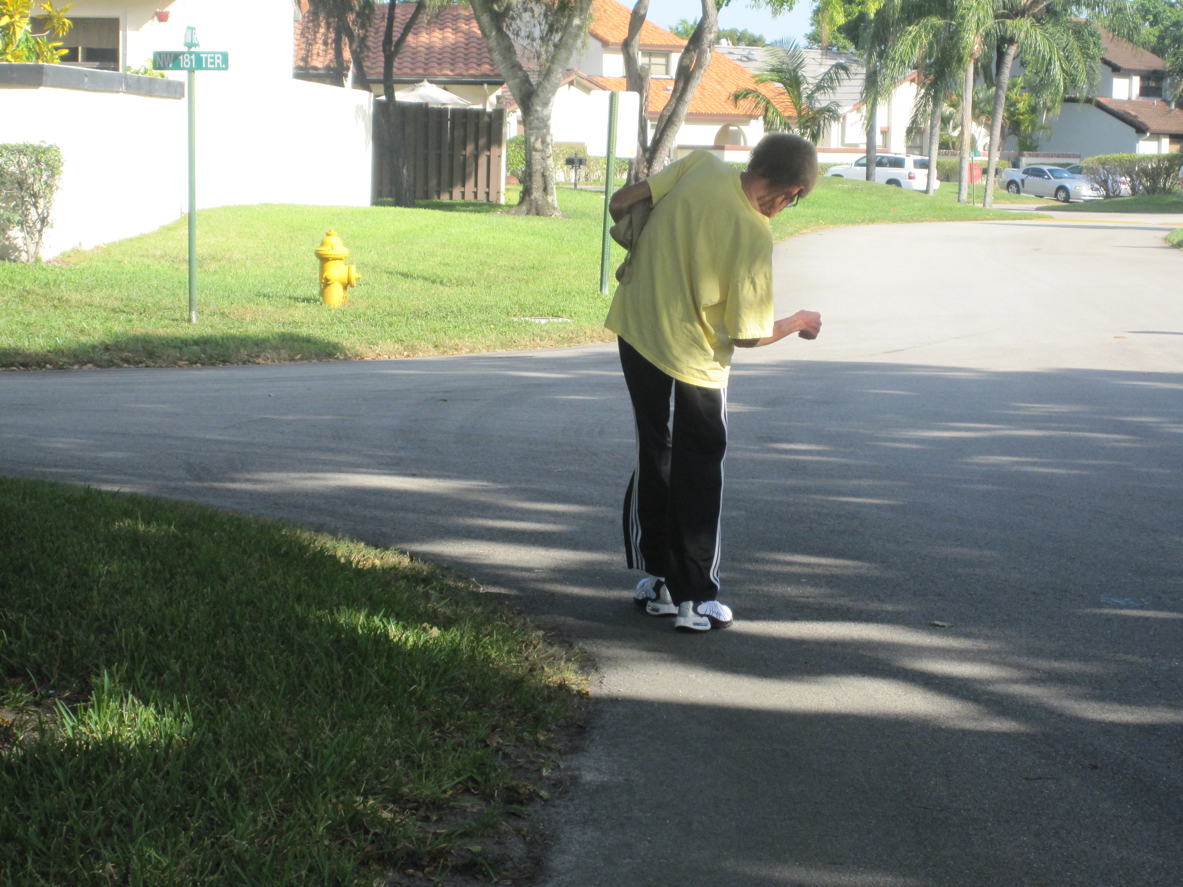 I last saw her on Friday afternoon, a week ago, around 1:13PM, close to where she was hit. She was leaning on the condominium walls, a sub-division in our community, her head down, her right hand on her right knee as if taking a minute break from walking. She appeared tired, beaten…!